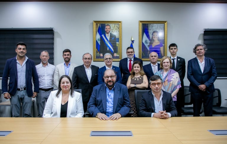El Salvador continúa proyectándose como un destino confiable para la inversión. El secretario de Inversiones de la Presidencia, Miguel Kattan y la vicecanciller, Adriana Mira, recibieron a los empresarios en casa Presidencial.